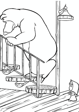 Masha and the Bear: Fidget Rolls Down the Stairs Coloring Page