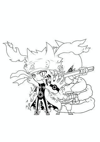 Naruto with Kurama Coloring Page