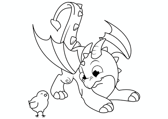 Young Dragon and Chicken Coloring Page